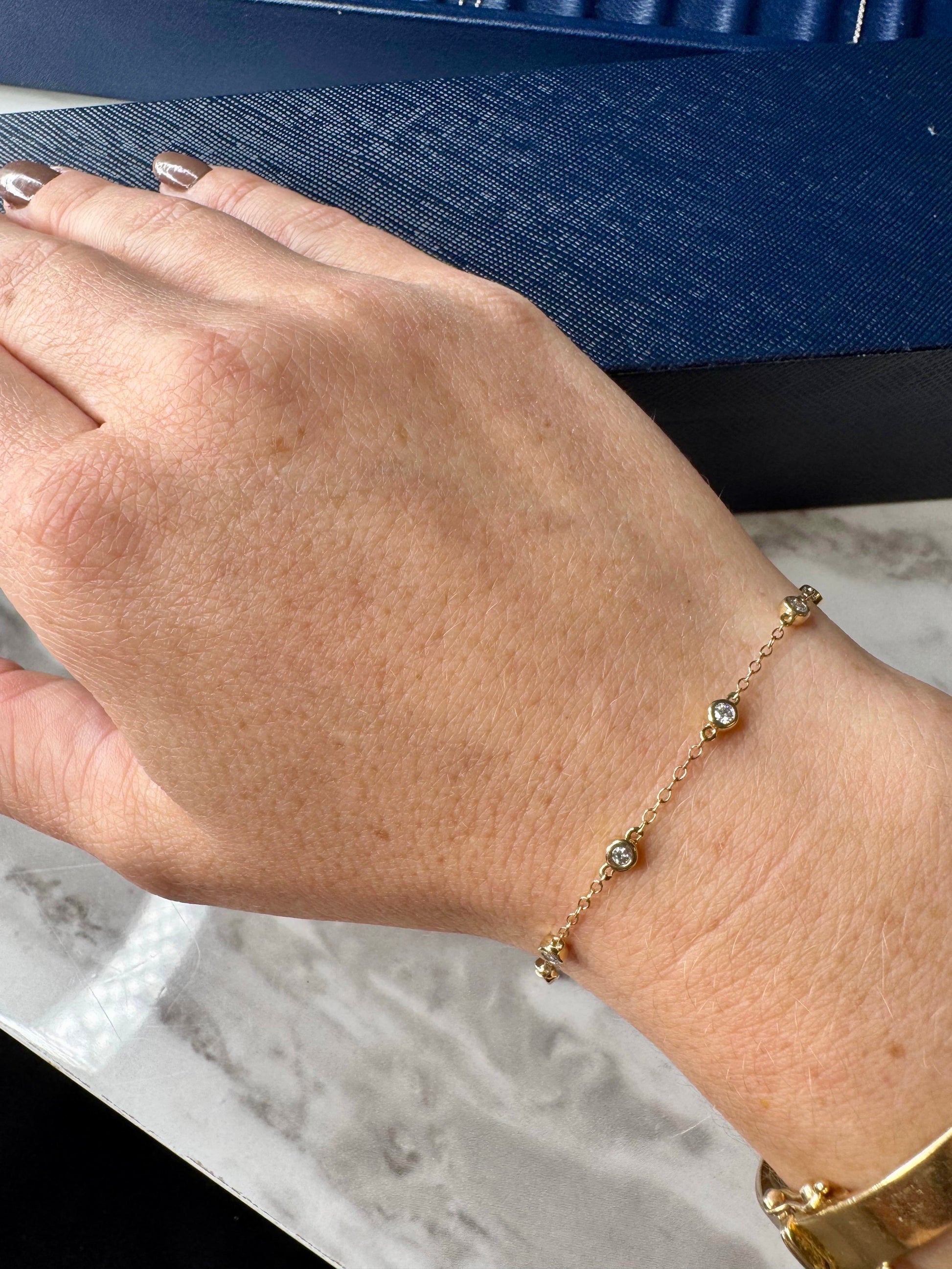 Indulge in ultimate luxury with our Diamond by the Yard Bracelet. Each sparkling diamond is carefully set along the delicate chain, exuding elegance and sophistication with every movement. Elevate your everyday look or add a touch of glamour to any special occasion. A timeless piece for the truly sophisticated.