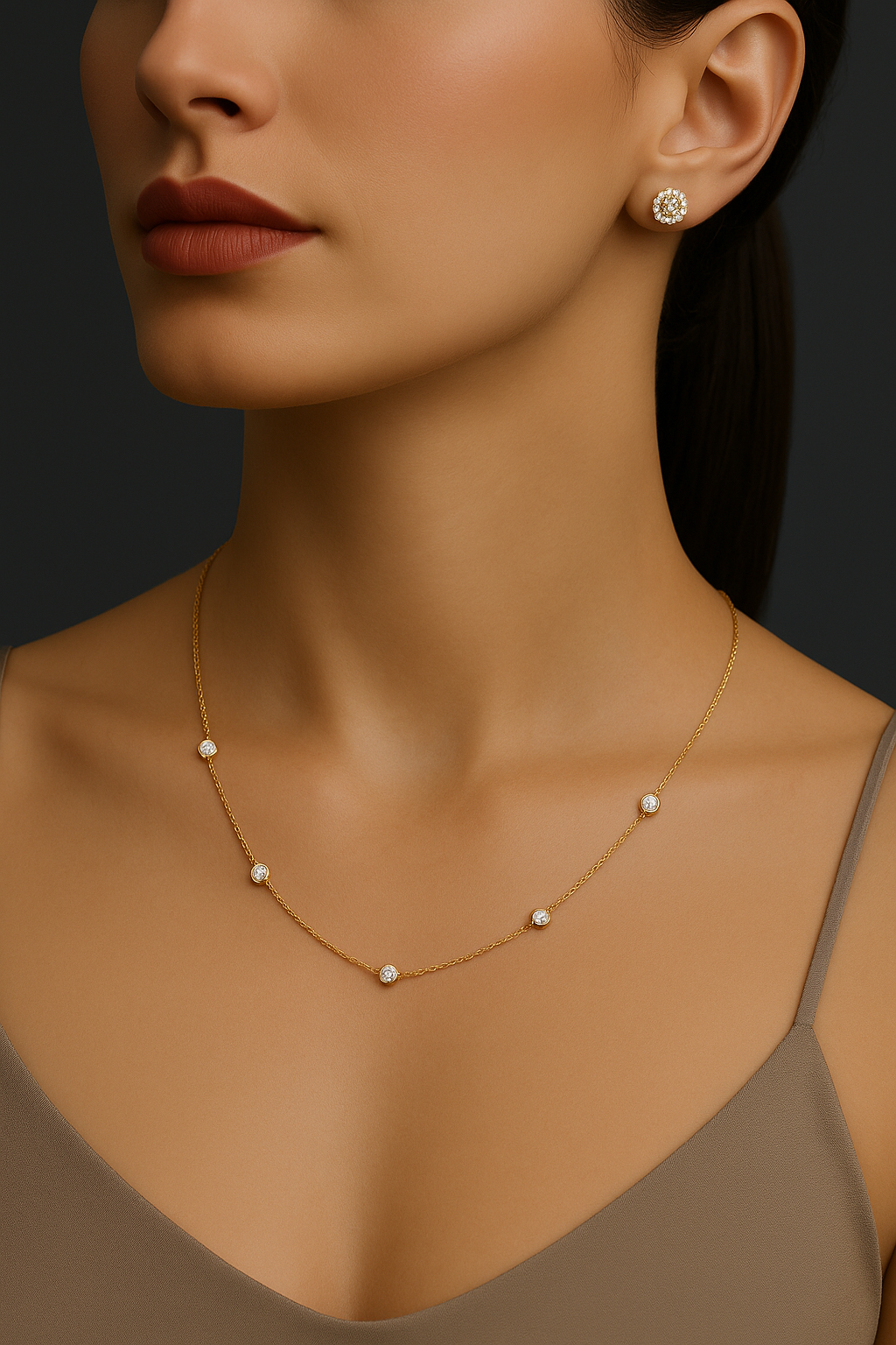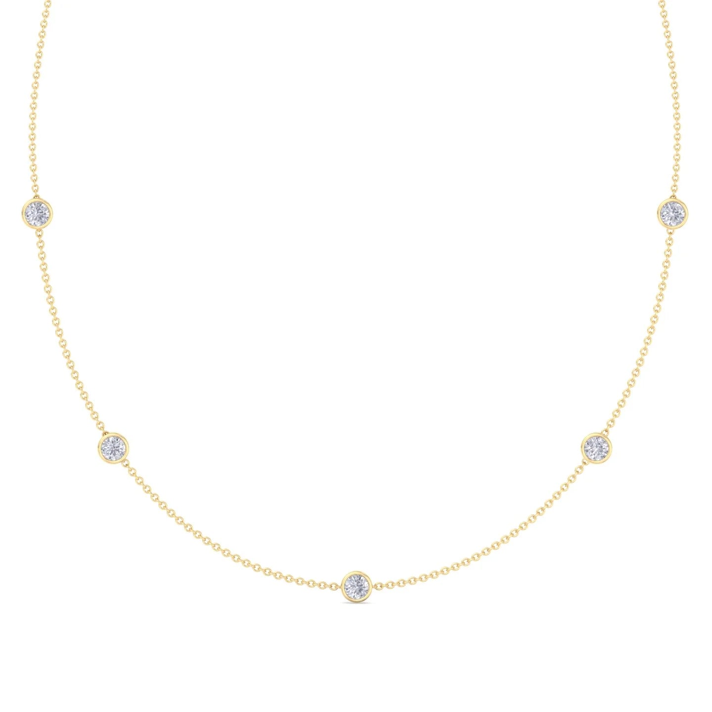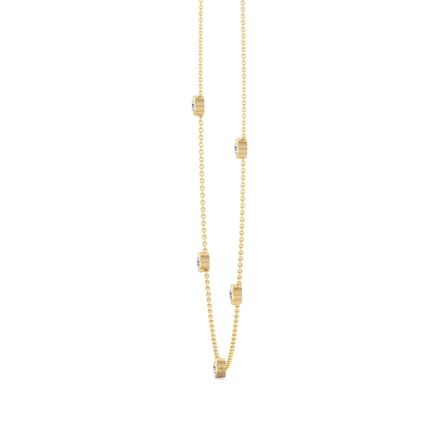 Indulge in luxury with our Diamonds By The Yard Necklace. Made with a durable rolo cable chain and adorned with stunning bezel set diamonds, this necklace is perfect for everyday wear and can also be layered for a chic look. Experience timeless elegance with this must-have jewelry piece.