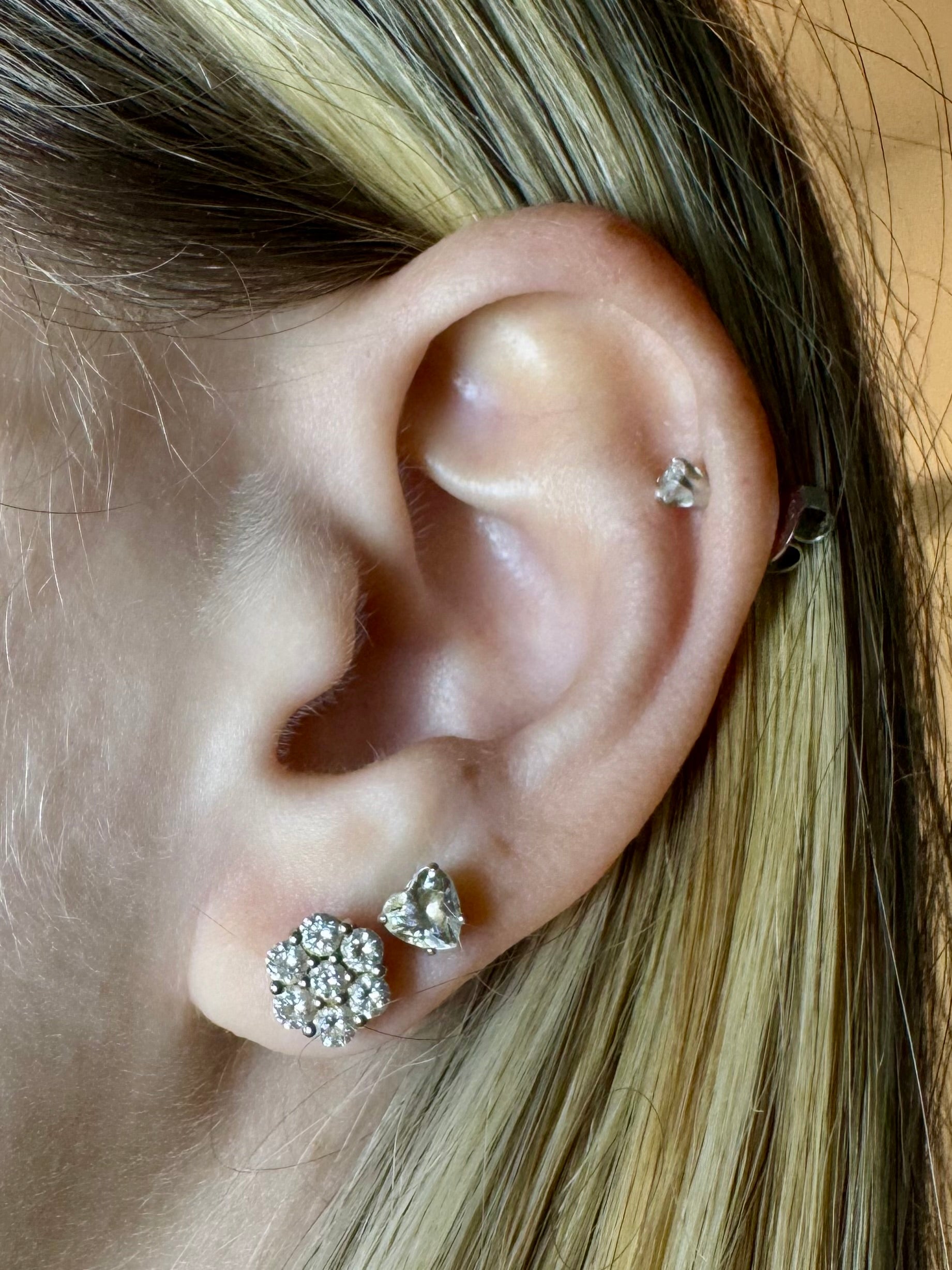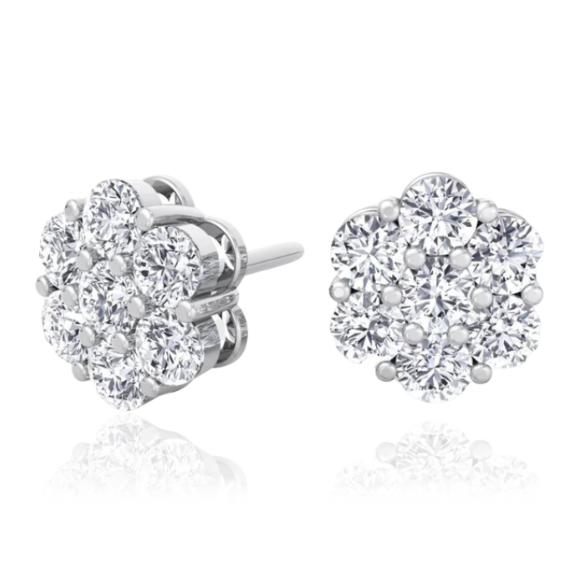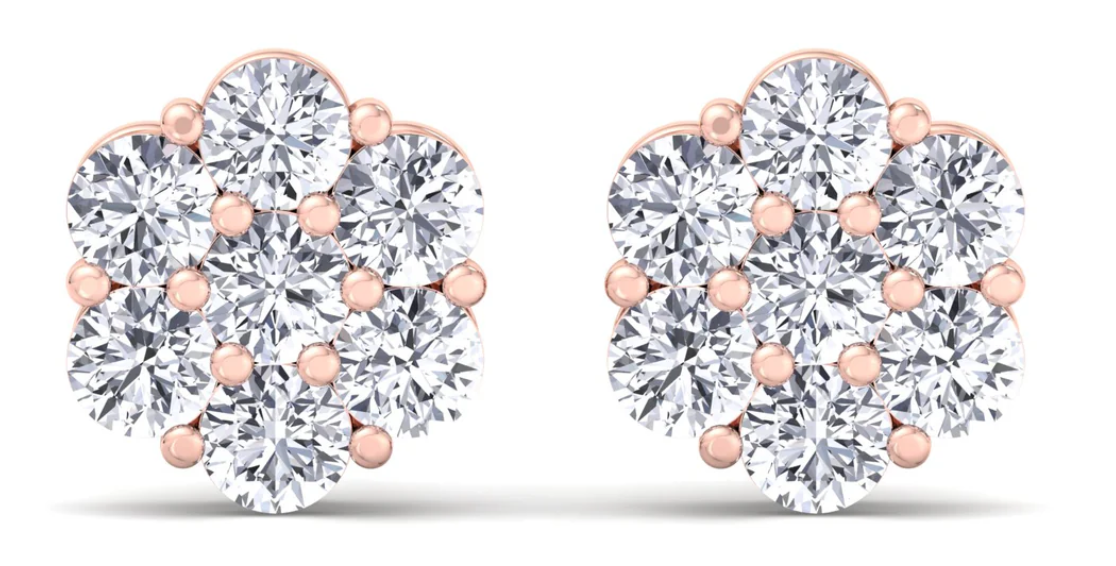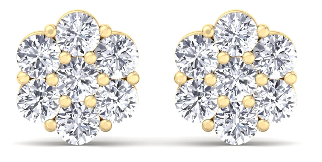 These luxurious studs feature a stunning cluster of high-quality round diamonds, creating a beautiful flower design that will truly shine on any occasion. Elevate your style and add a touch of elegance to any outfit with these must-have earrings.