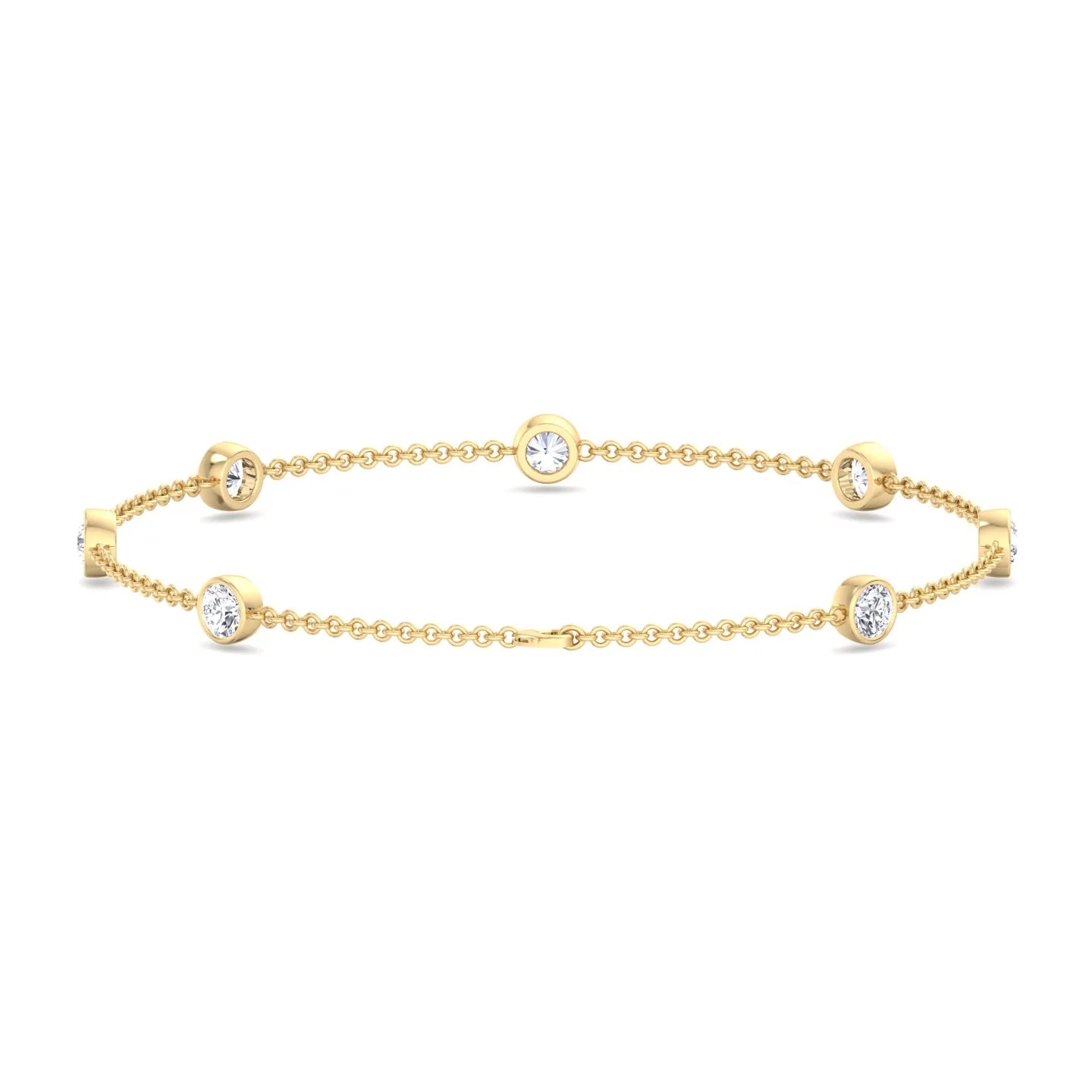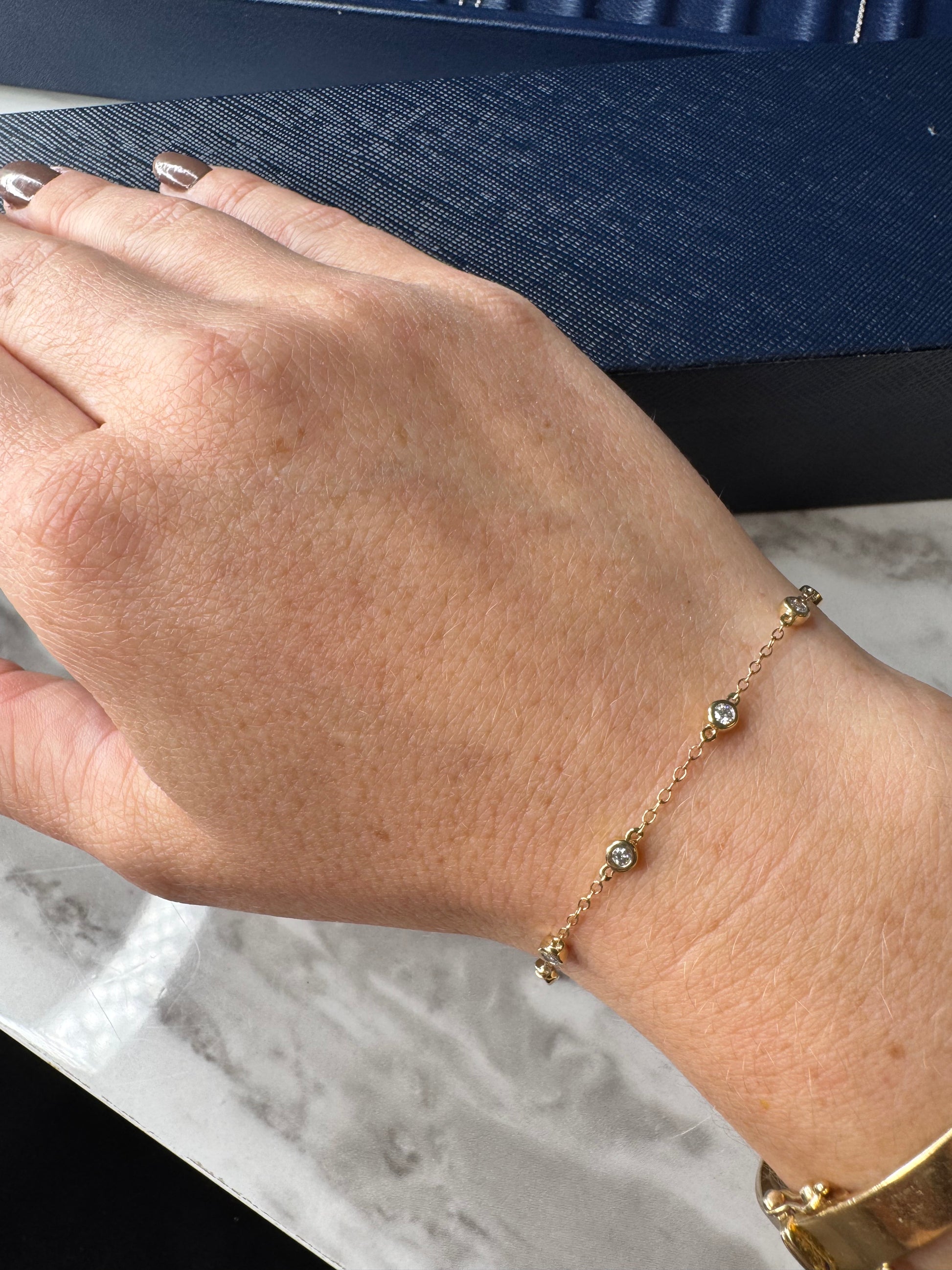 Indulge in timeless luxury with our Natural Diamonds by the Yard Bracelet. Exquisitely designed with bezel-set diamonds, this elegant and versatile piece will elevate any outfit. Layer it with other bracelets or wear it alone for a touch of glamour. Perfect for any occasion.